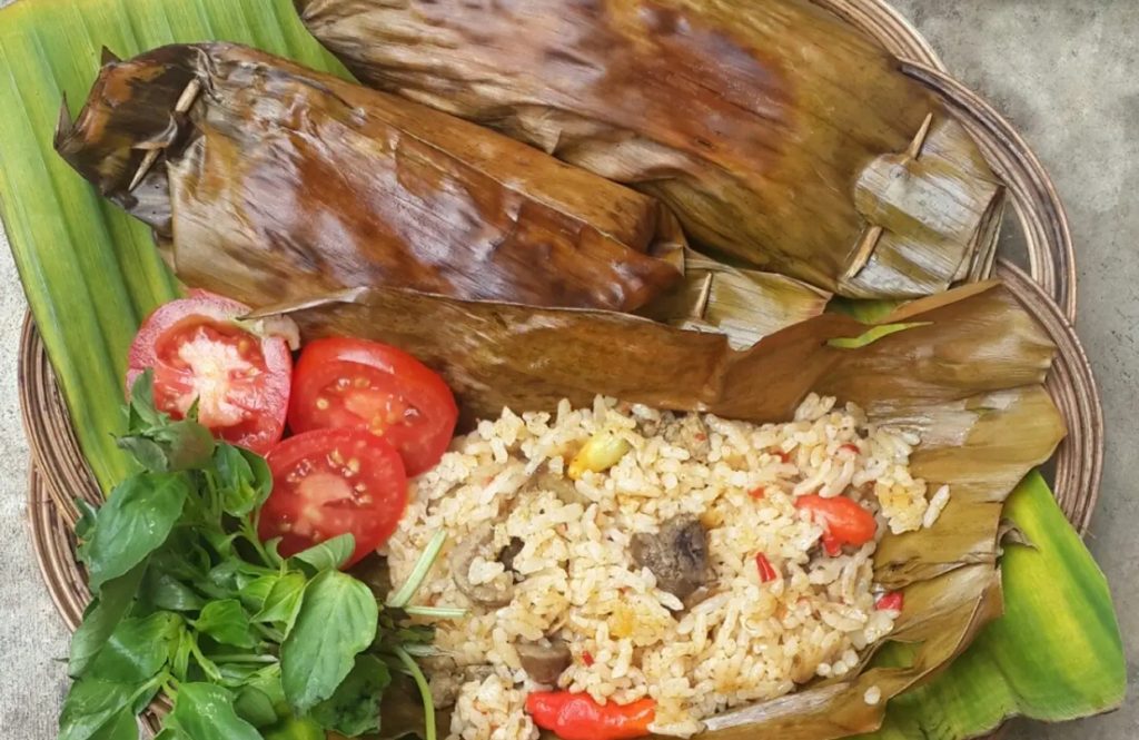 – Daun pisang secukupnya, layukan di atas api agar lentur