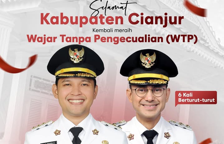 BRANDA.CO.ID – Untuk ke 6 kalinya, di tahun 2024  Pemerintah Kabupaten (Pemkab) Cianjur kembali  meraih opini Wajar Tanpa Pengecualian (WTP) atas Laporan Keuangan Pemerintah Daerah (LKPD). tahun anggaran 2024.