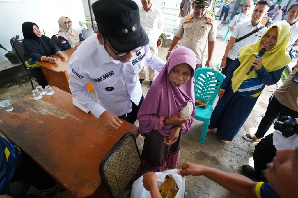 Saat meninjau lokasi, Bobby tampak berinteraksi hangat dengan warga penerima manfaat, menanyakan rencana pemanfaatan sembako bersubsidi yang mereka beli.