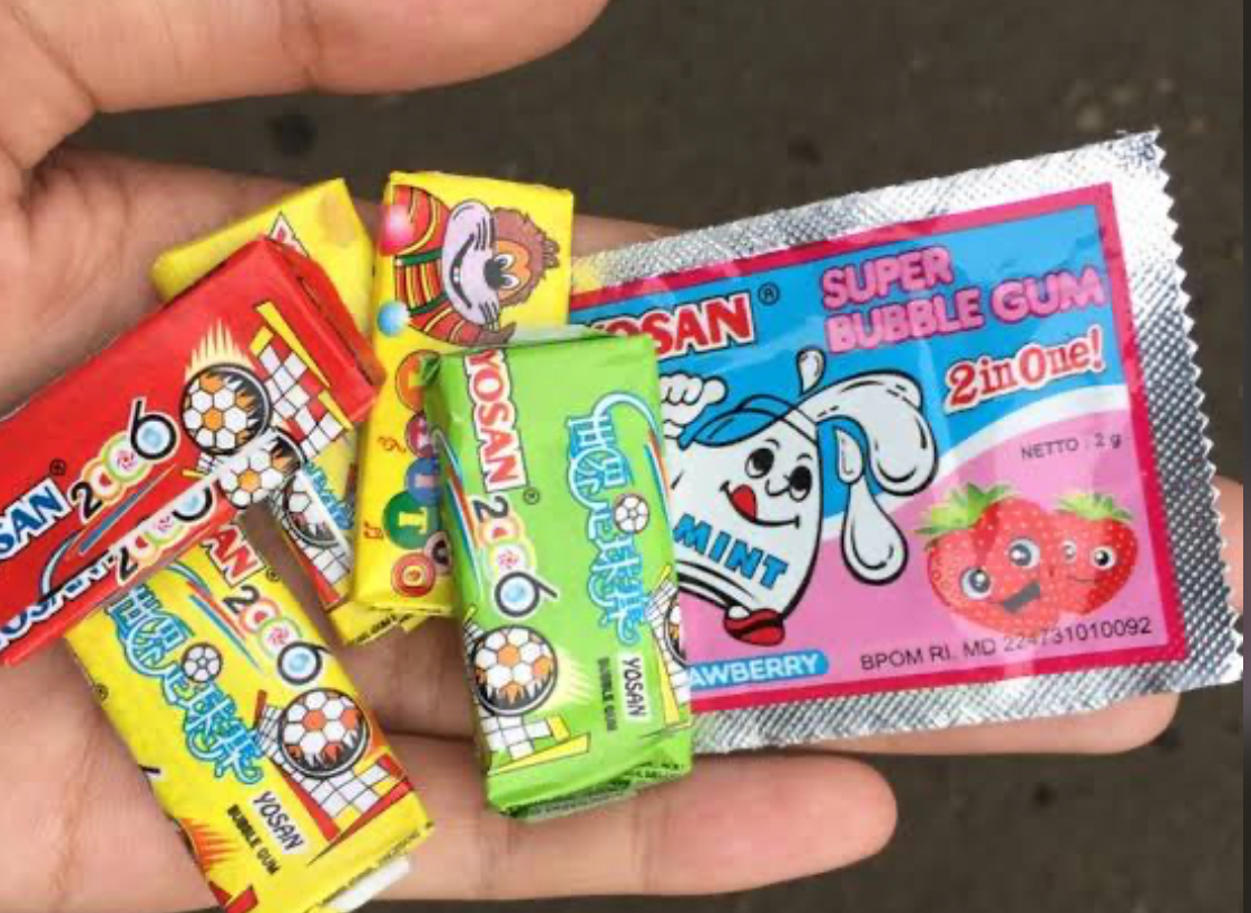 Kedua, Permen Karet YOSAN dan Mini Ball. Dua merek permen karet ini sangat populer di kalangan anak 90-an. Selain rasa manis dan variasi rasanya, daya tarik utama YOSAN adalah tantangan mengumpulkan huruf-huruf (Y-O-S-A-N) yang tertera pada kemasannya.