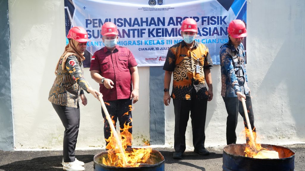 BRANDA.CO.ID — Kantor Imigrasi Kelas III Non TPI Cianjur melaksanakan kegiatan pemusnahan arsip substantif keimigrasian berupa dokumen paspor tahun 2019 yang telah melewati masa retensi lima tahun, Kamis (10/7/2025)