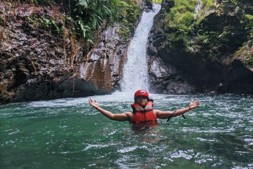 Dikelilingi panorama hijau dari Gunung Sawal dan hamparan sawah, Curug Panganten jadi lokasi favorit untuk healing dan olahraga air ringan seperti body rafting.