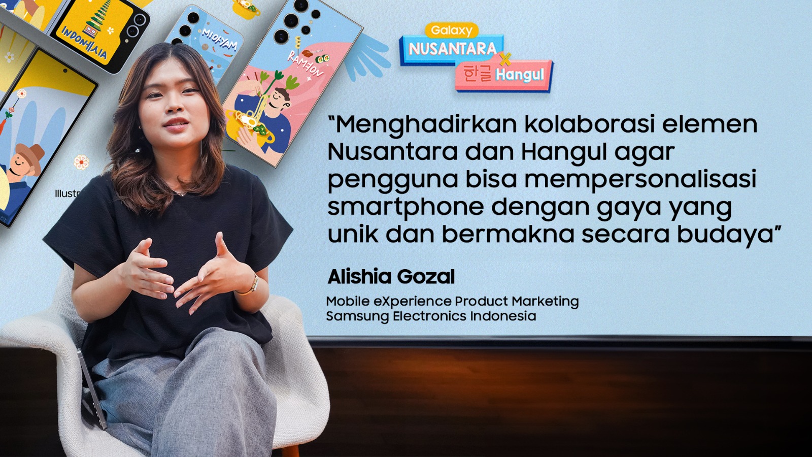 “Kami memahami bahwa konsumen Indonesia juga menggemari budaya Korea Selatan. Di saat yang sama, mereka juga bangga dengan budaya lokal. Dari insight ini, kami menghadirkan kolaborasi antara elemen Nusantara dan Hangul, sehingga pengguna bisa mempersonalisasi smartphone mereka dengan gaya yang unik dan bermakna secara budaya,” jelas Alishia.