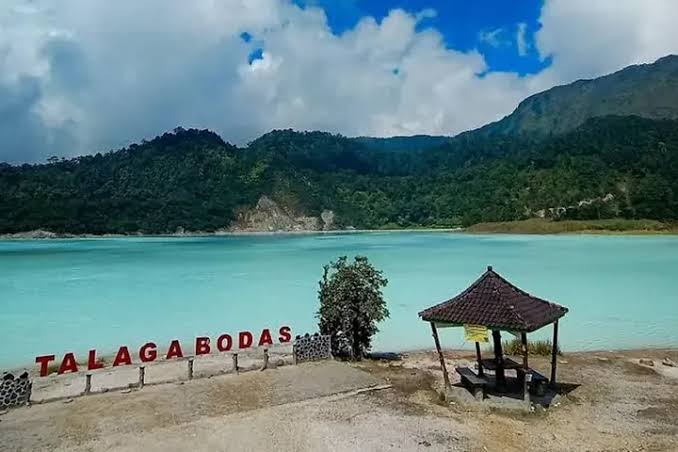 BRANDA.CO.ID – Terletak di pegunungan Kabupaten Garut, tepatnya di Desa Sukamenak dan Sukahurip, Kecamatan Wanaraja, Talaga Bodas menyuguhkan pemandangan kawah berupa danau berwarna putih kehijauan.