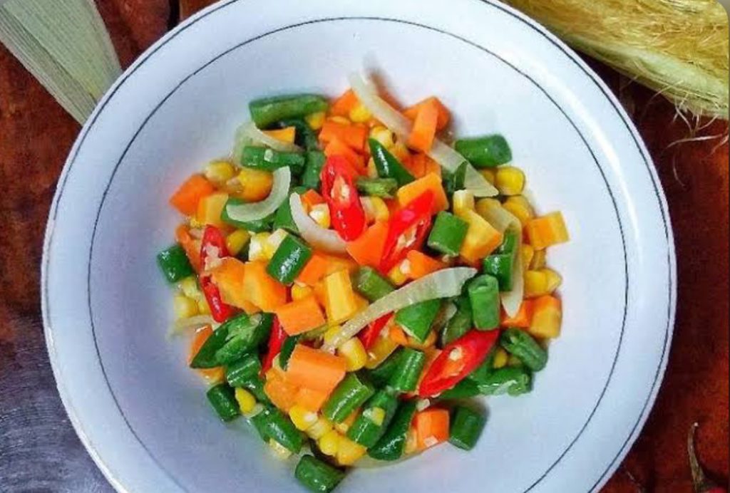Dengan perpaduan berbagai sayuran segar berwarna-warni, tumis sayur ceria ini tidak hanya memanjakan mata tetapi juga kaya akan nutrisi yang dibutuhkan tubuh.
