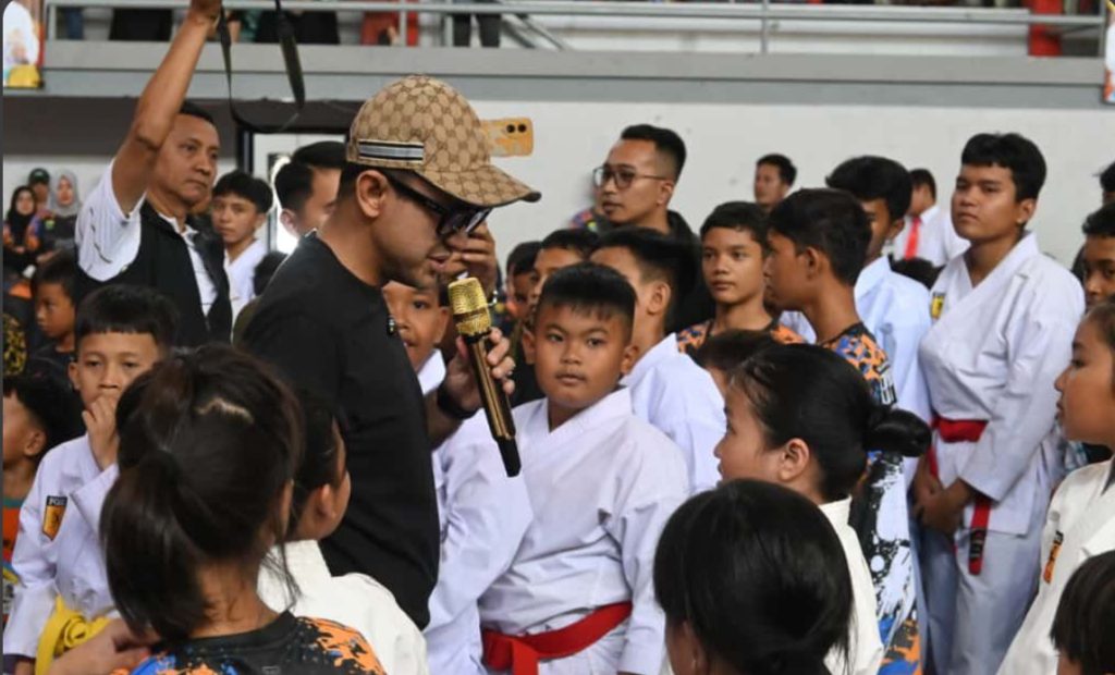BRANDA.CO.ID – Wakil Bupati Cianjur, Abi Ramzi, menghadiri sekaligus membuka Kejuaraan Karate Bupati Cup Tahun 2025 se-Jawa Barat yang digelar di GOR GGM Panembong, Sabtu (6/9/2025).