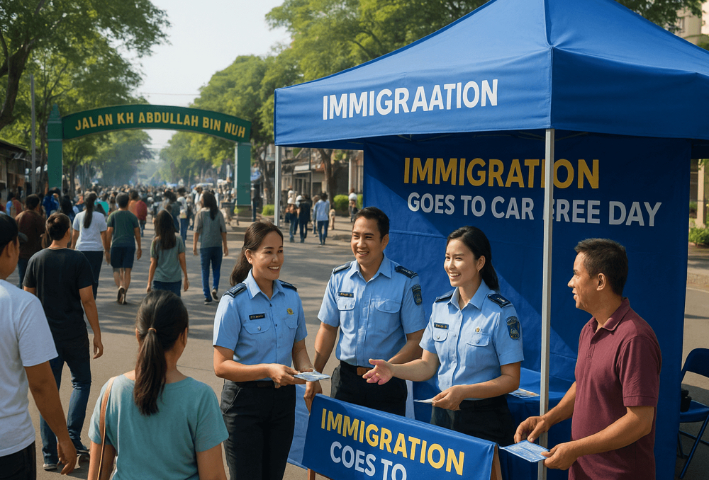 BRANDA.CO.ID – Suasana Car Free Day (CFD) di Jalan KH Abdullah Bin Nuh, Cianjur, pada Minggu (2/11/2025) terasa sedikit berbeda. Di salah satu sudut, tepat di pintu masuk Perumahan Belka Cianjur, tampak keramaian warga yang berkumpul di sekitar tenda berwarna biru milik Kantor Imigrasi Kelas III Non TPI Cianjur.