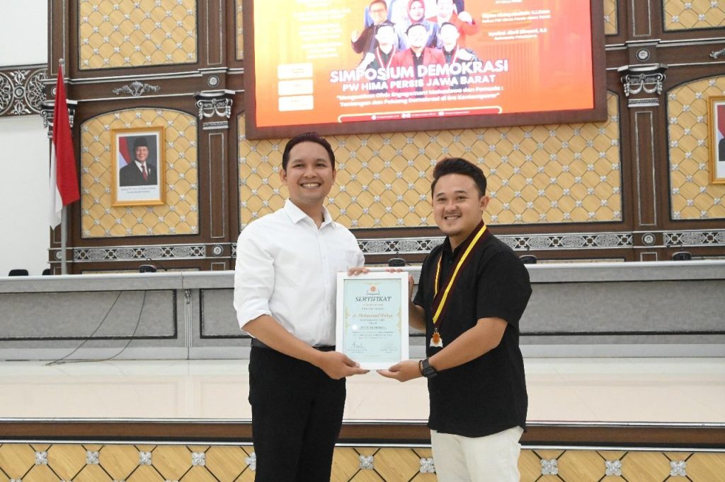 Pada kesempatan tersebut, Bupati menerima sertifikat penghargaan sebagai opening speech Simposium Pendidikan Demokrasi – HIMA PERSIS.