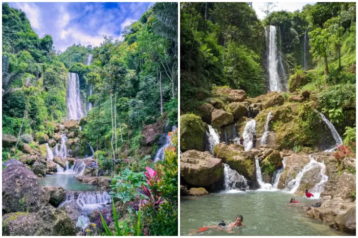 Air terjun ini memiliki aliran air bertingkat, dengan beberapa tingkatan yang menciptakan pemandangan alam yang dramatis dan menenangkan. Debit airnya yang jernih mengalir deras di atas batuan alami, memberikan suasana yang menyegarkan dan ideal untuk melepas penat dari rutinitas sehari-hari.