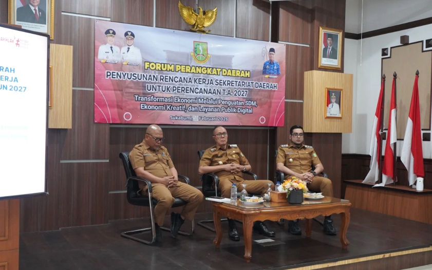 BRANDA.CO.ID – Wali Kota Sukabumi H. Ayep Zaki menghadiri sekaligus membuka Forum Perangkat Daerah (FPD) Penyusunan Rencana Kerja Sekretariat Daerah Kota Sukabumi Tahun 2026 dengan tema “Transformasi Ekonomi melalui Penguatan SDM Ekonomi Kreatif dan Layanan Publik Digital”, Selasa (10/02/2026), bertempat di Ruang Rapat Utama (Ruper) Setda Kota Sukabumi.