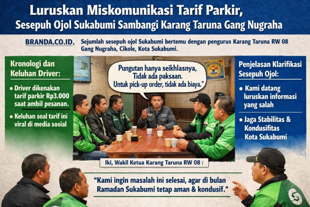 BRANDA.CO.ID – Sejumlah tokoh senior atau sesepuh ojek online (ojol) di Kota Sukabumi mendatangi pengurus Karang Taruna RW 08 di Gang Nugraha, RW 01, Kelurahan Cikole, Kamis (12/3/2026).