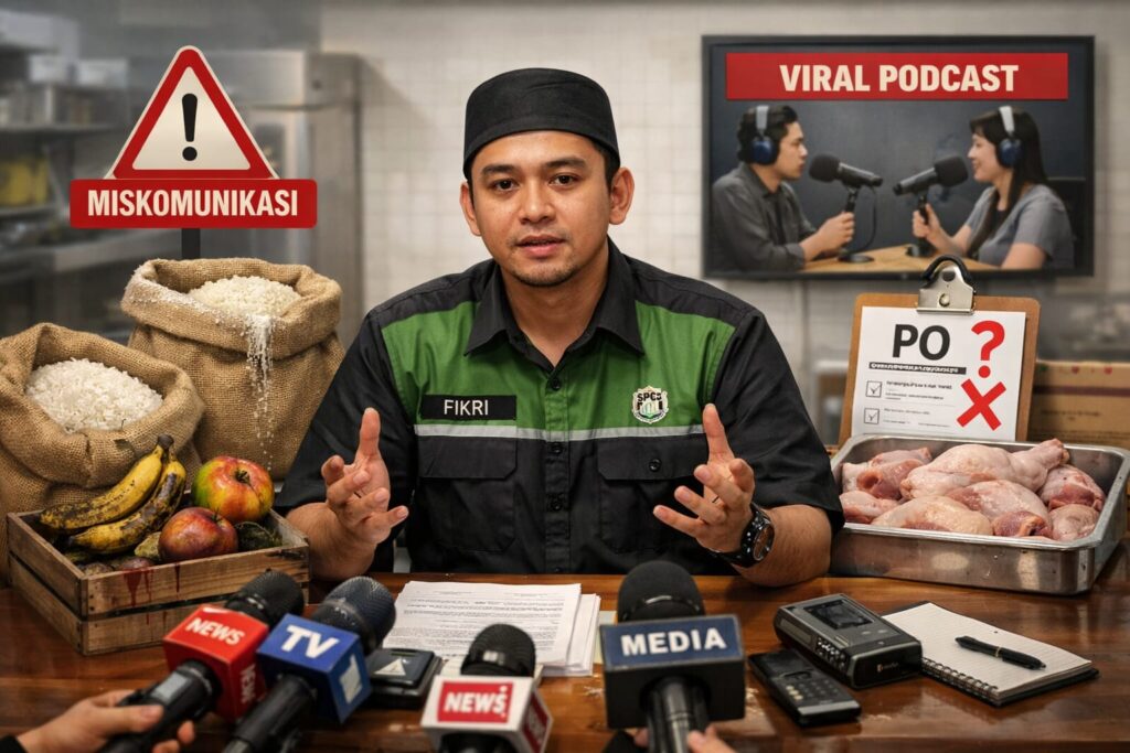 BRANDA.CO.ID – Kepala Satuan Pelayanan Pemenuhan Gizi (SPPG) Lembursitu 2, Fikri Febriansyah, akhirnya buka suara terkait viralnya konten podcast yang menyinggung dugaan persoalan pembelian (purchase order/PO) bahan makanan di dapur program Makan Bergizi Gratis (MBG).